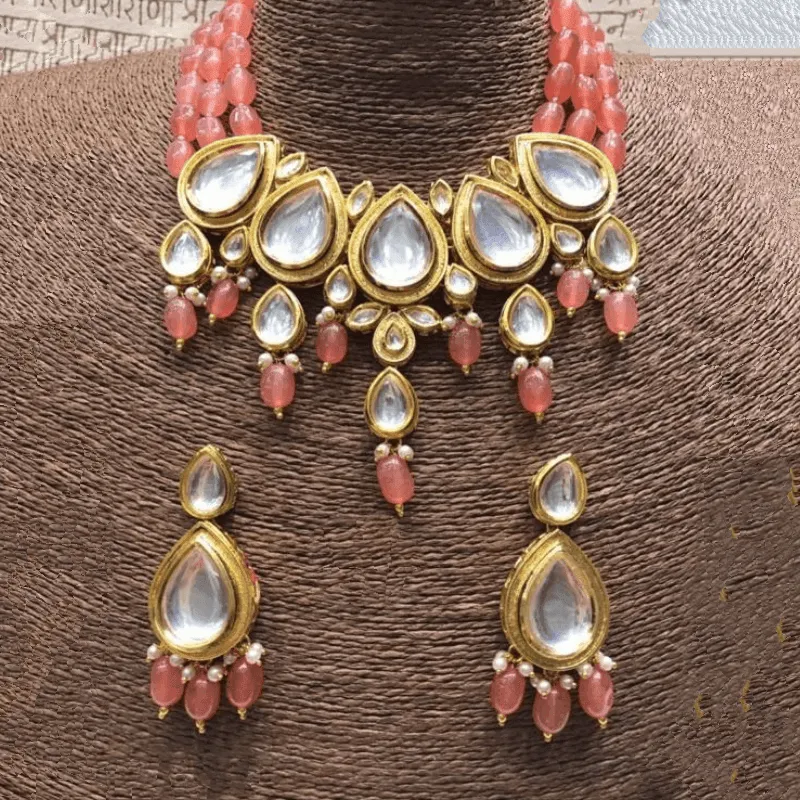 Drop Meena Kundan Beads Necklace